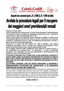 COBAS-CODIR Segreteria Generale -90144 Palermo, via Francesco Cilea n. 11 Tel. 091 6824399 – Fax 091 6834432 – email: segreteria.codir@gmail.com – Pec: segreteria.generale@pec.codir.it