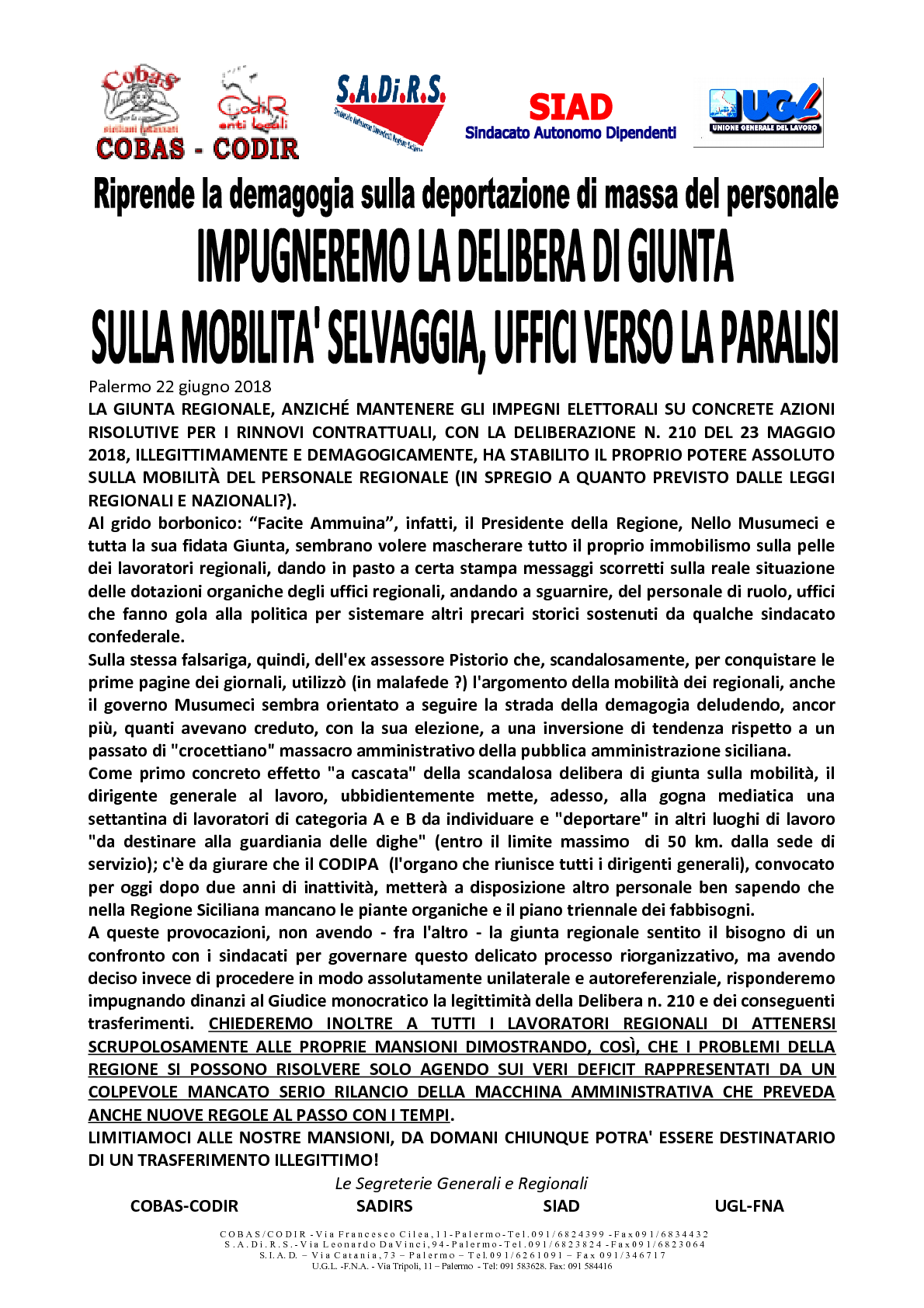 COBAS-CODIR Segreteria Generale -90144 Palermo, via Francesco Cilea n. 11 Tel. 091 6824399 – Fax 091 6834432 – email: segreteria.codir@gmail.com – Pec: segreteria.generale@pec.codir.it