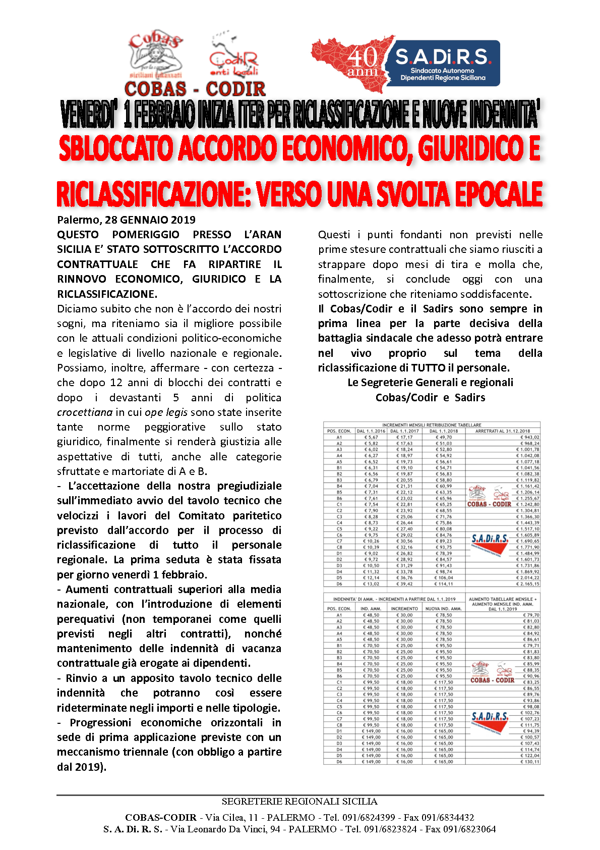 Saluti a Tutto il COBAS-CODIR E BUON LAVORO.