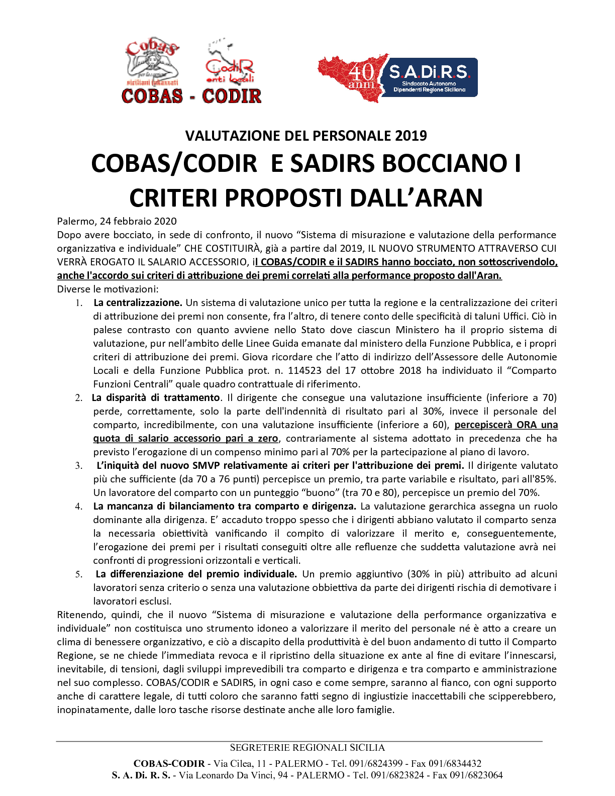 COBAS-CODIR Segreteria Generale -90144 Palermo, via Francesco Cilea n. 11 Tel. 091 6824399 – Fax 091 6834432 – email: segreteria.codir@gmail.com – Pec: segreteria.generale@pec.codir.it