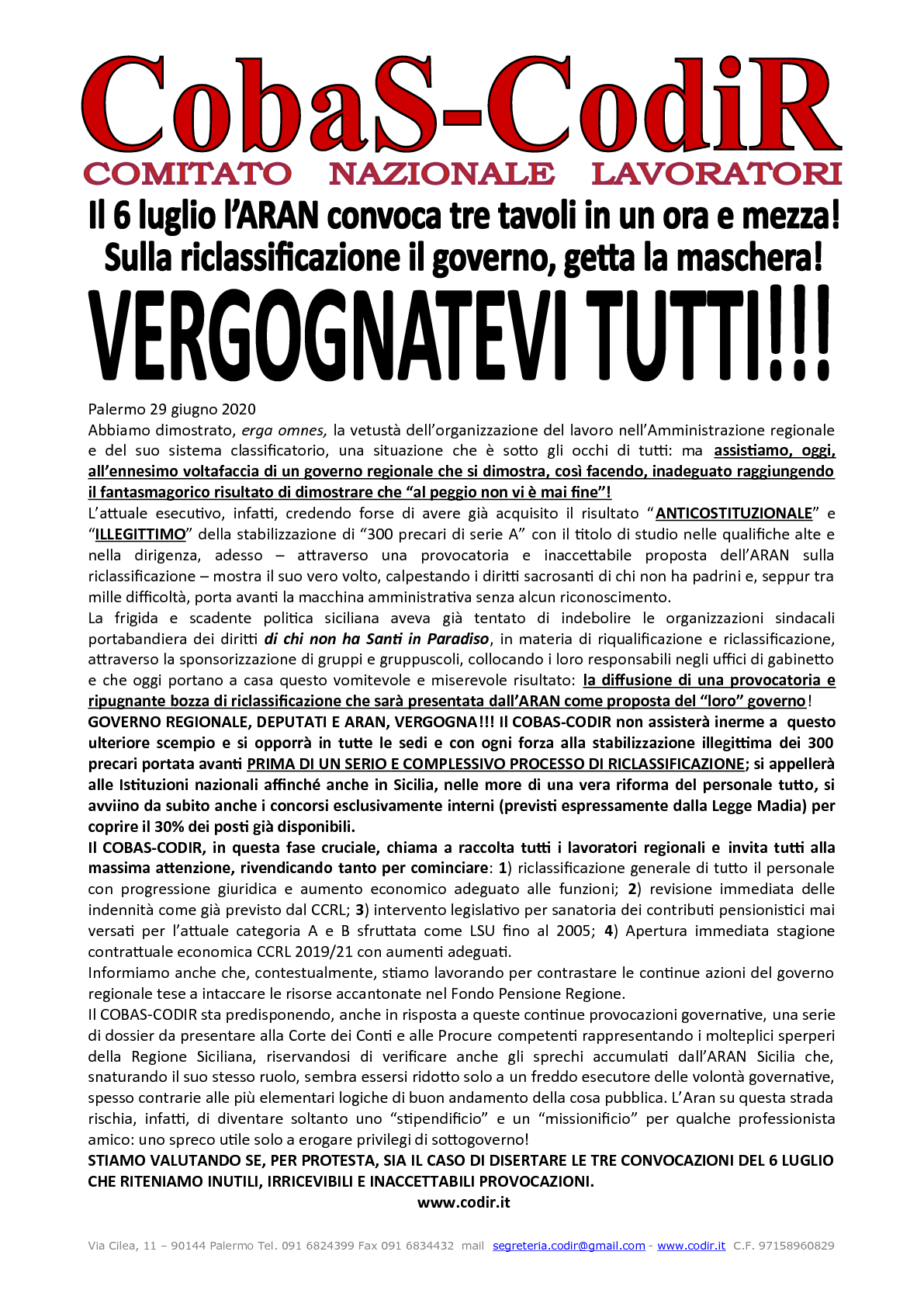 Credo che sia arrivata veramente l’ora di denunciare con forza tutta l’opinione pubblica siciliana, che prenda atto con tutte le iniziative forti, di un sicuro fallimento di questo governo regionale, capeggiato da Nullo Musumeci. Non si può pretendere di rilanciare una macchina amministrativa regionale senza alcun criterio di minima riforma, attesa da oltre dieci anni. Con questo modo il territorio regionale non ha futuro,le risorse economiche necessarie non saranno mai utilizzate. Una terra destinata a essere abbandonata dai giovani, altro che diventerà bellissima…….!!!!