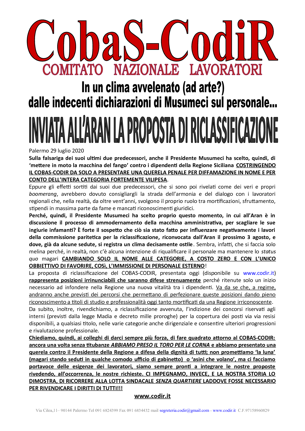 COBAS-CODIR Segreteria Generale -90144 Palermo, via Francesco Cilea n. 11 Tel. 091 6824399 – Fax 091 6834432 – email: segreteria.codir@gmail.com – Pec: segreteria.generale@pec.codir.it