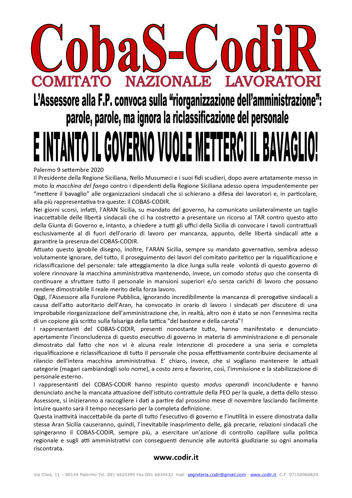 COBAS-CODIR Segreteria Generale -90144 Palermo, via Francesco Cilea n. 11 Tel. 091 6824399 – Fax 091 6834432 – email: segreteria.codir@gmail.com – Pec: segreteria.generale@pec.codir.it