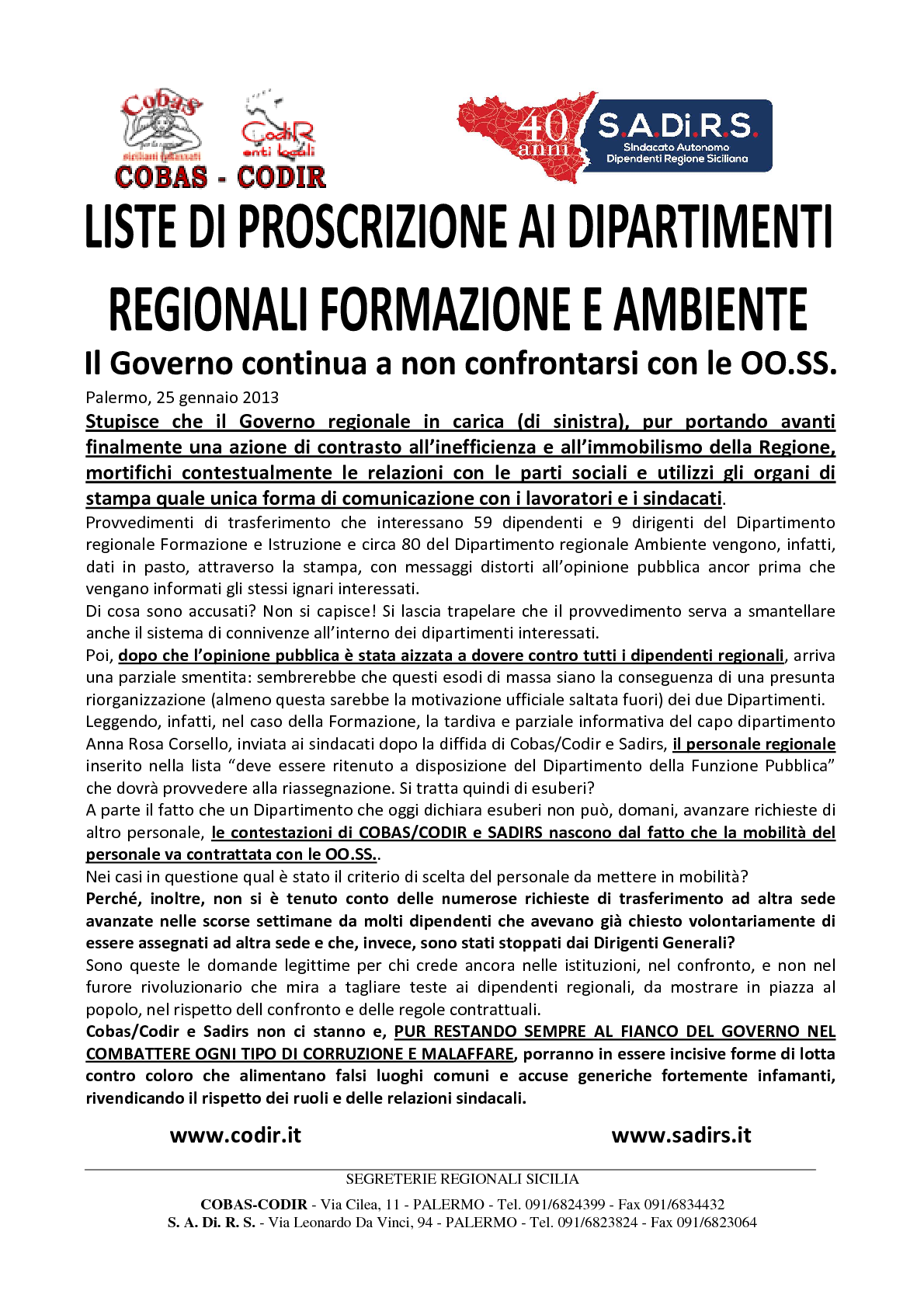 Dove erano i sindacati quando Lombardo e.c. assegnavano incarichi ai dirigenti generali e ai dirigenti di servizio?