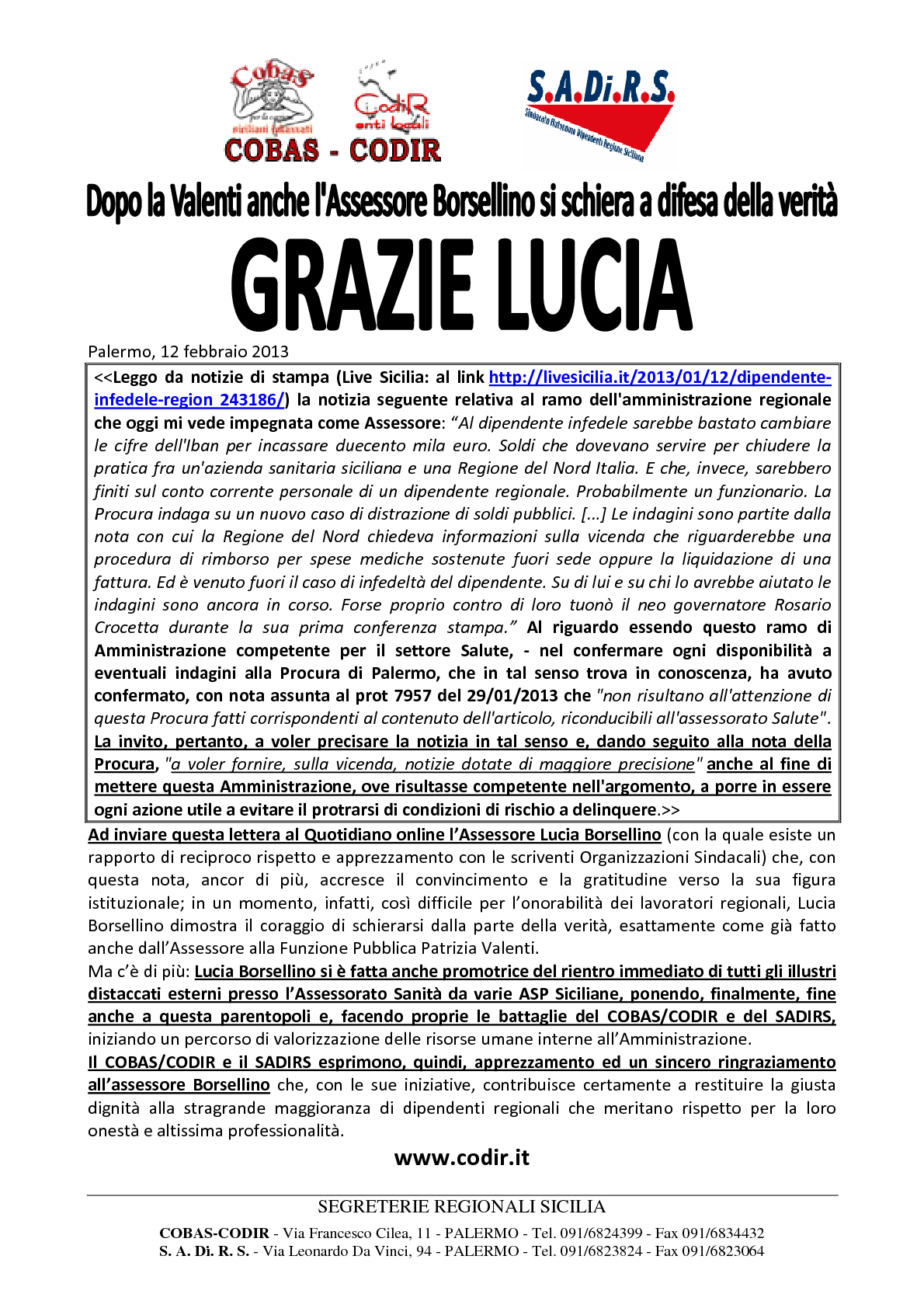 potevo capirlo dal sadirs (sempre filo governativi) ma dagli “Inkazzati” da quello che erano NO ……… mi intitolate un comunicato grazie silvia ????? ma grazie di cosa … ragazzi sveglia ….. non siamo più persone ma merce da macello, non siamo una categoria di lavoratori ma parassiti e voi non siete sindacato che tutelano i lavoratori ma tutelate solo i vostri interessi personali perchè in caso contrario denuncereste per prima “silvia” ed a seguire gli altri di questo governo, denuncereste che i dirigenti guadagnano troppo e non sono all’altezza di dirigere e potrei aggiungere che vi siete dimenticati (forse le deleghe mensili fanno stare bene tutti voi) di carriera, professionalità e dignità di noi regionali.