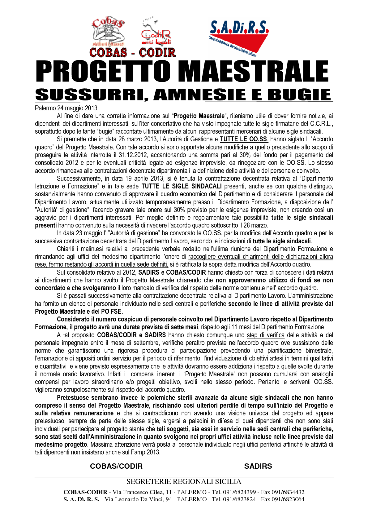 Forse, a seguito delle deportazioni di personale operate, non ha più senso parlare di “Progetto Maestrale”, in quanto pensato, organizzato e messo in opera da colleghi che, molto probabilmente, sono stati trasferiti altrove (e, con essi, anche la relativa competenza).