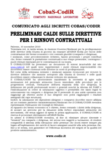 • “PRELIMINARI CALDI SULLE DIRETTIVE PER I RINNOVI CONTRATTUALI”