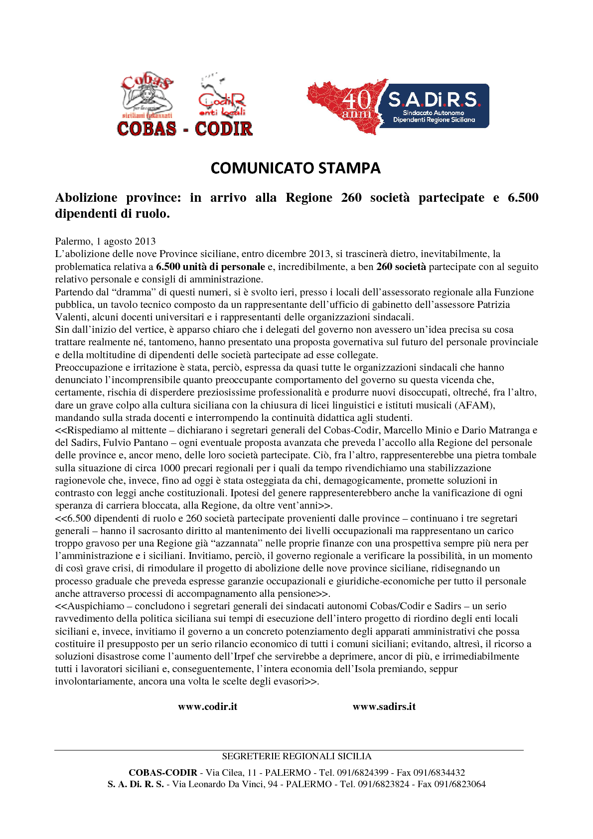 COBAS-CODIR Segreteria Generale -90144 Palermo, via Francesco Cilea n. 11 Tel. 091 6824399 – Fax 091 6834432 – email: segreteria.codir@gmail.com – Pec: segreteria.generale@pec.codir.it