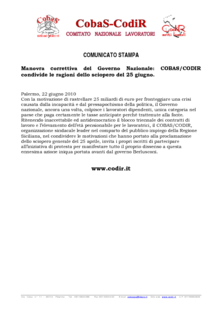 COBAS-CODIR Segreteria Generale -90144 Palermo, via Francesco Cilea n. 11 Tel. 091 6824399 – Fax 091 6834432 – email: segreteria.codir@gmail.comPec: segreteria.generale@pec.codir.it