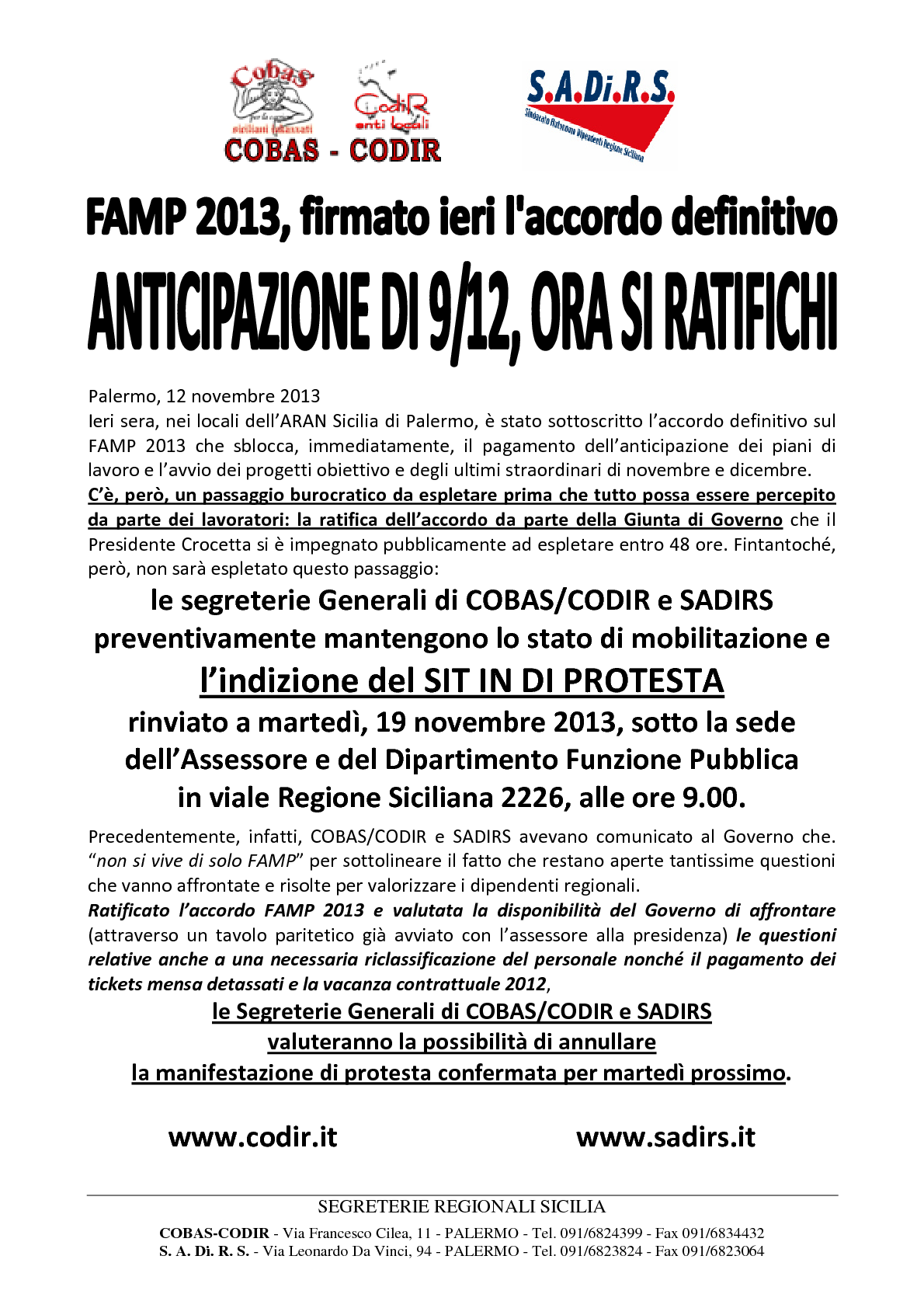 COBAS-CODIR Segreteria Generale -90144 Palermo, via Francesco Cilea n. 11 Tel. 091 6824399 – Fax 091 6834432 – email: segreteria.codir@gmail.com – Pec: segreteria.generale@pec.codir.it
