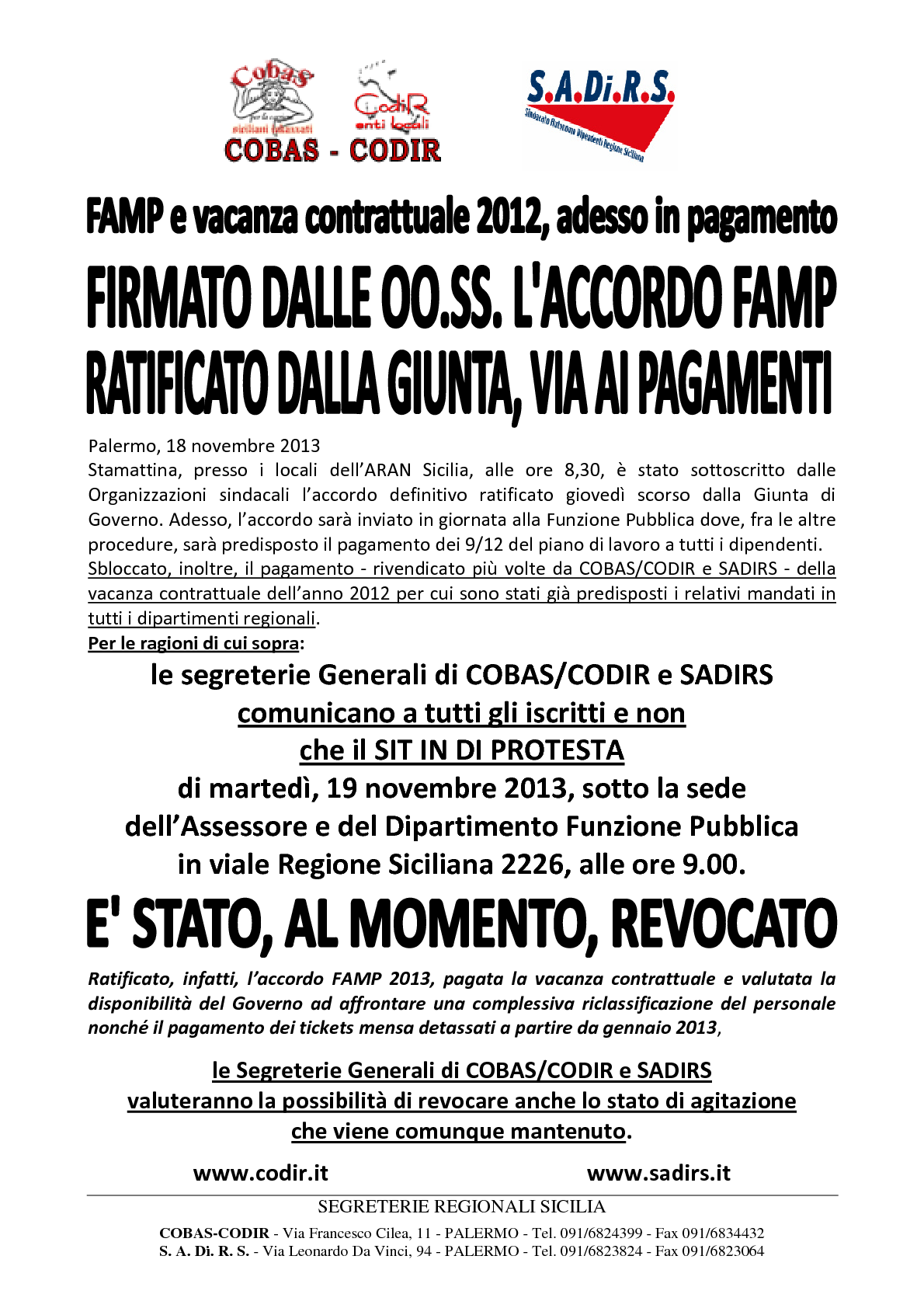COBAS-CODIR Segreteria Generale -90144 Palermo, via Francesco Cilea n. 11 Tel. 091 6824399 – Fax 091 6834432 – email: segreteria.codir@gmail.com – Pec: segreteria.generale@pec.codir.it