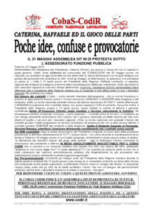 • POCHE IDEE CONFUSE E PROVOCATORIE (Sit in di protesta il 31 maggio)