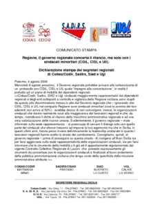 • Il governo regionale concerta il rilancio, ma solo con i sindacati minoritari (CGIL, CISL e Uil)
