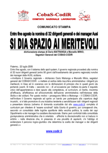 • Nomine dirigenti generali: si dia spazio ai meritevoli (comunicato stampa)