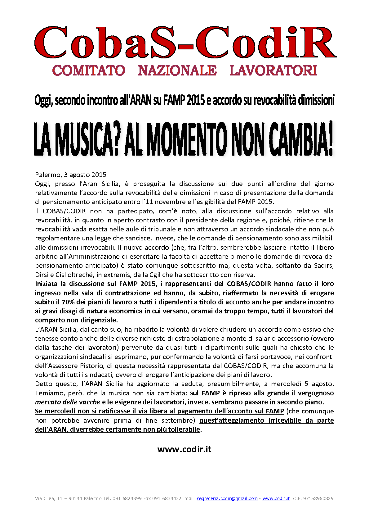 comunicato 3 agosto 2015