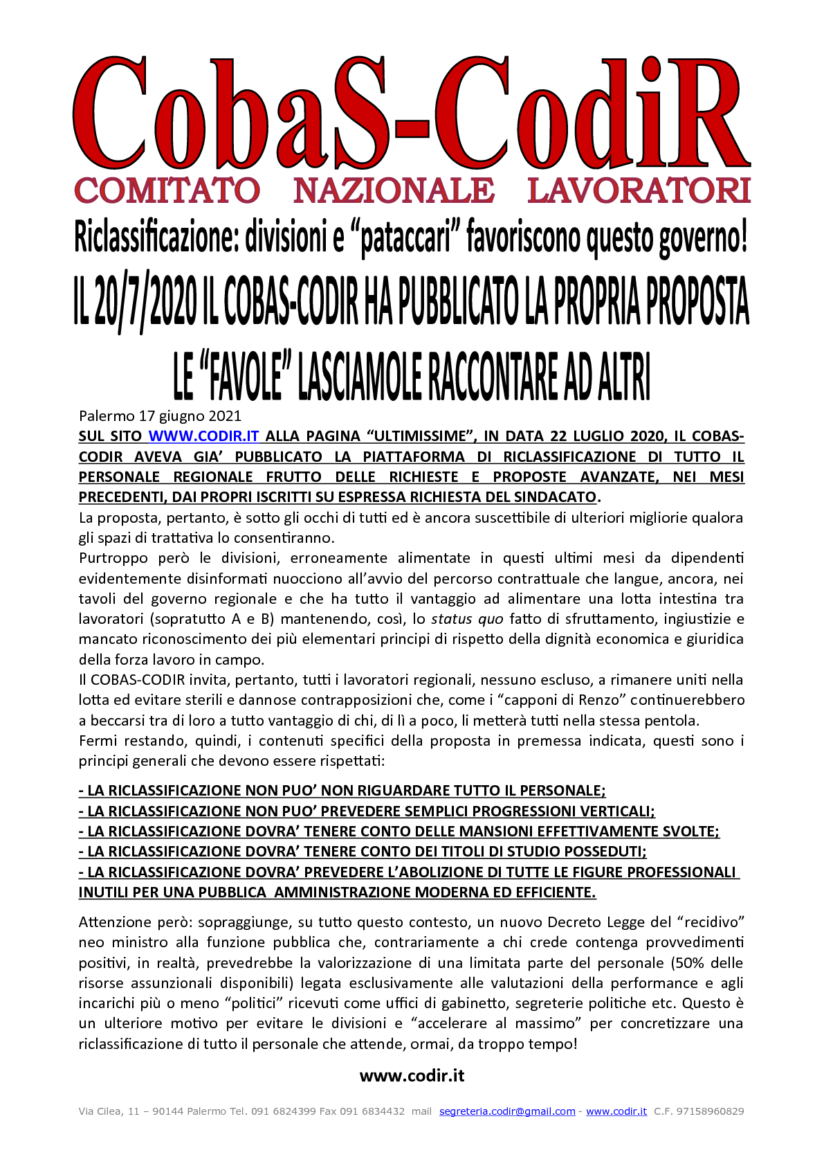 COBAS-CODIR Segreteria Generale -90144 Palermo, via Francesco Cilea n. 11 Tel. 091 6824399 – Fax 091 6834432 – email: segreteria.codir@gmail.com – Pec: segreteria.generale@pec.codir.it
