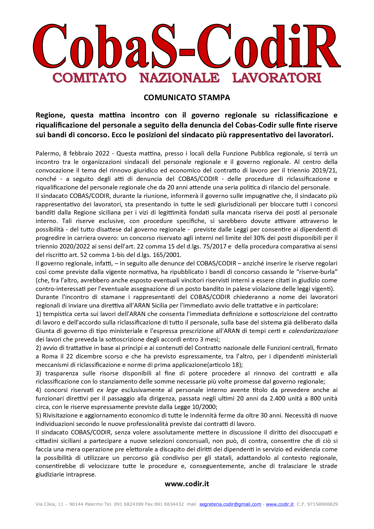 COBAS-CODIR Segreteria Generale -90144 Palermo, via Francesco Cilea n. 11 Tel. 091 6824399 – Fax 091 6834432 – email: segreteria.codir@gmail.com – Pec: segreteria.generale@pec.codir.it