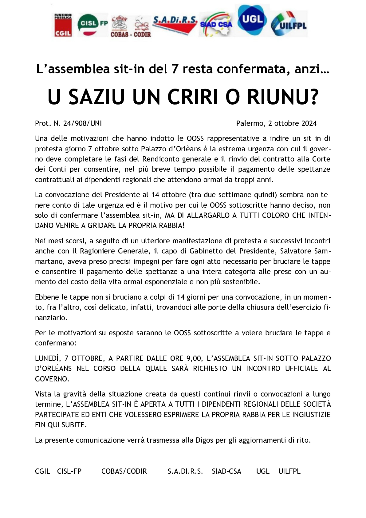 COBAS-CODIR Segreteria Generale -90144 Palermo, via Francesco Cilea n. 11 Tel. 091 6824399 – Fax 091 6834432 – email: segreteria.codir@gmail.com – Pec: segreteria.generale@pec.codir.it