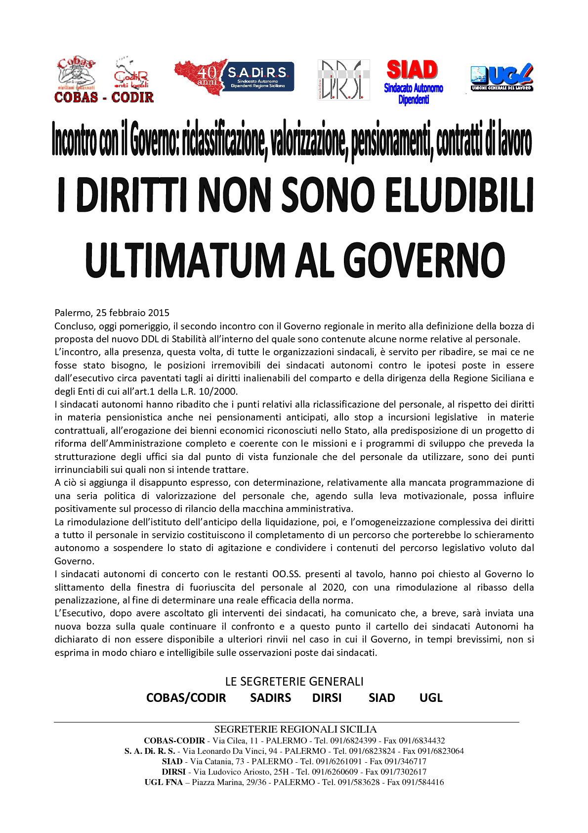 COBAS-CODIR Segreteria Generale -90144 Palermo, via Francesco Cilea n. 11 Tel. 091 6824399 – Fax 091 6834432 – email: segreteria.codir@gmail.comPec: segreteria.generale@pec.codir.it