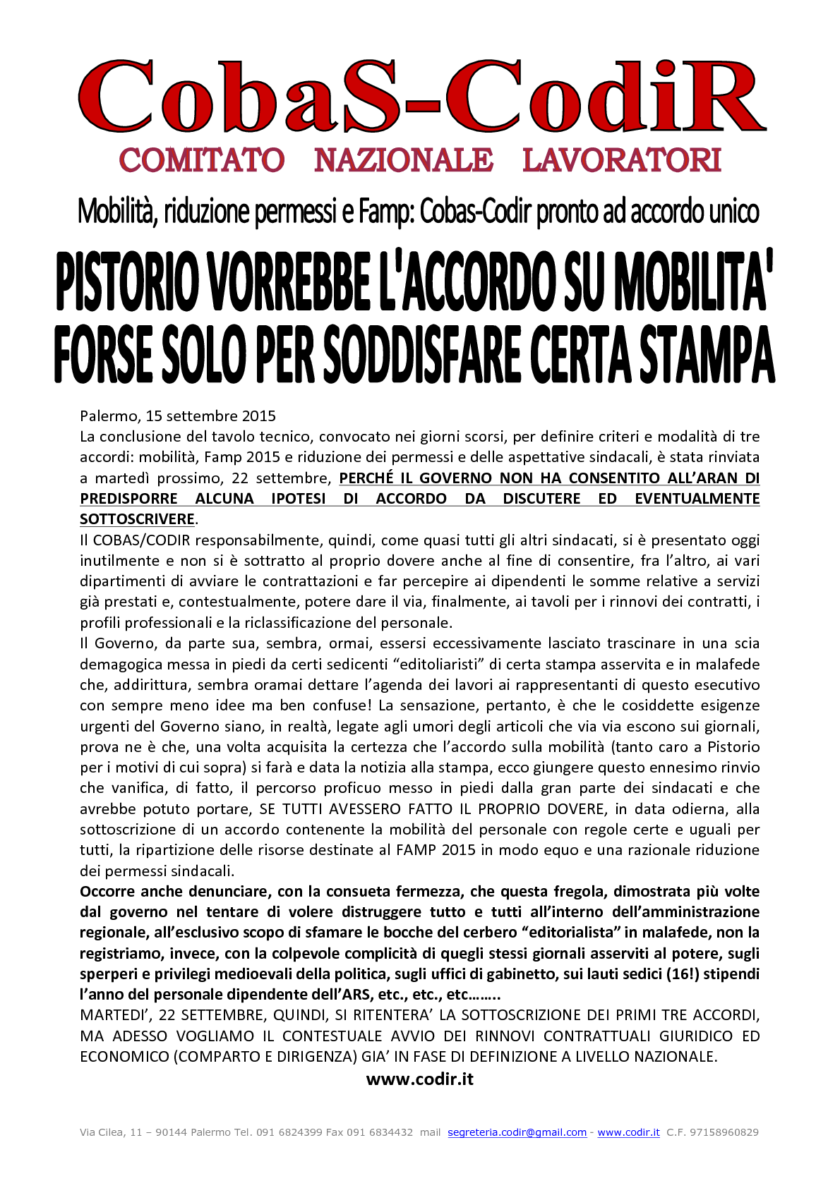 COBAS-CODIR Segreteria Generale -90144 Palermo, via Francesco Cilea n. 11 Tel. 091 6824399 – Fax 091 6834432 – email: segreteria.codir@gmail.com – Pec: segreteria.generale@pec.codir.it